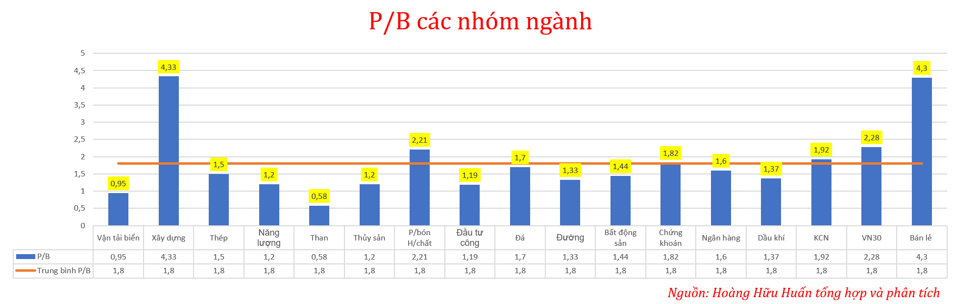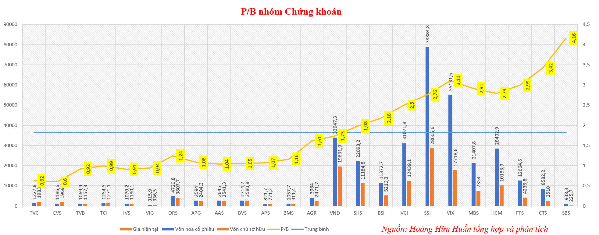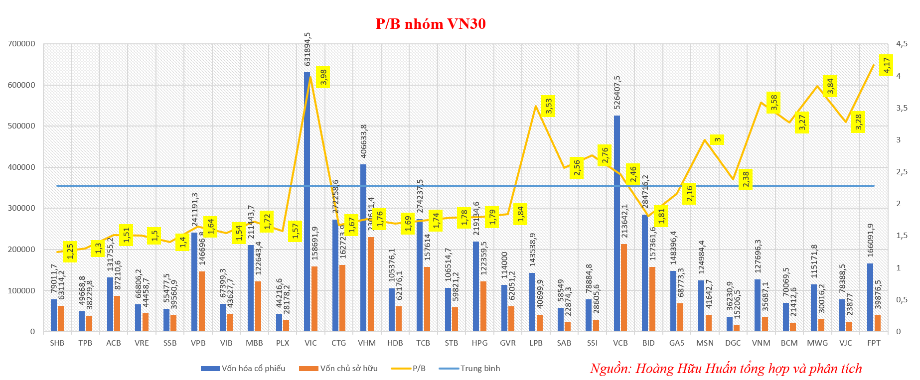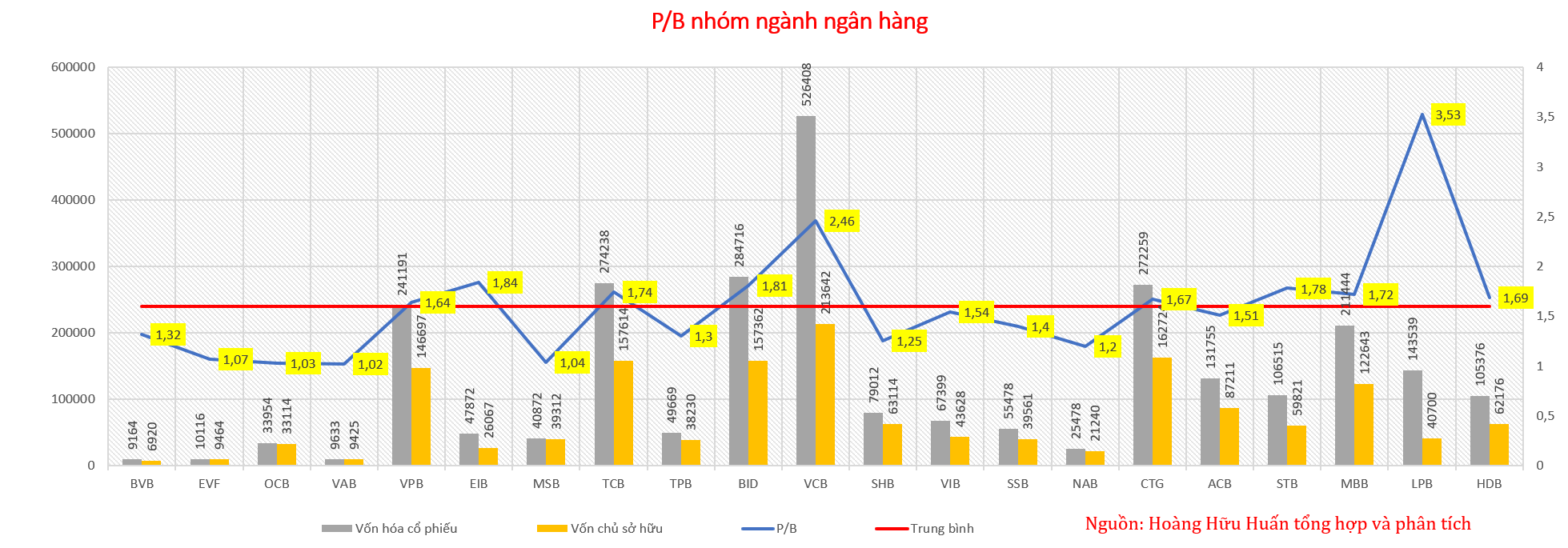 hoặc P/B = Vốn hóa công ty / Vốn chủ sở hữu