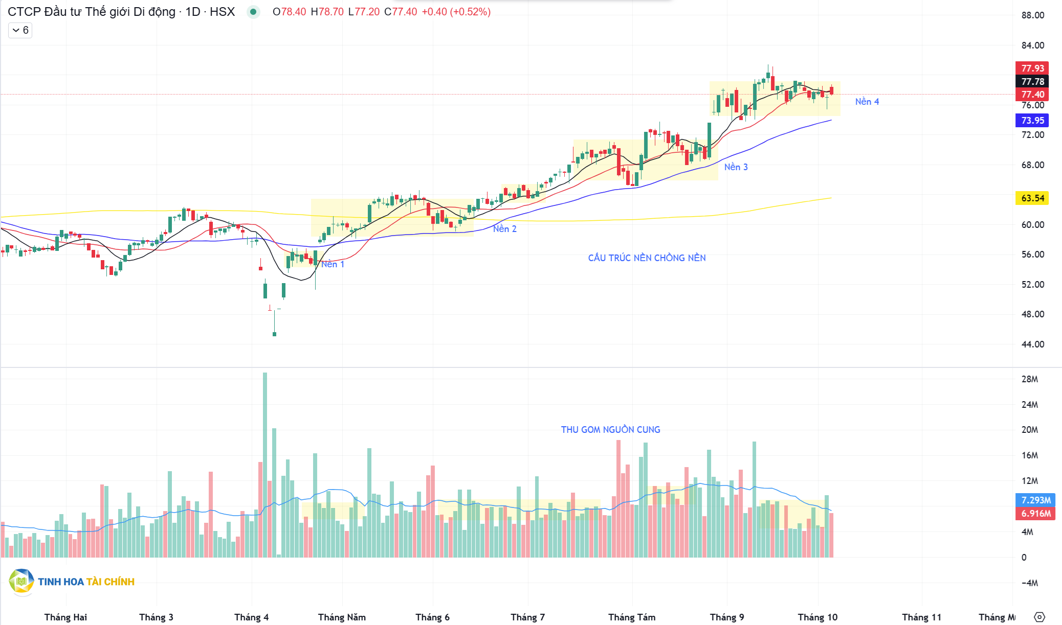 Ở phía sau mỗi nền giá đều có câu chuyện riêng được kỳ vọng, đặc biệt trong nữa cuối năm 2025 về câu chuyện nâng hạng, riêng MWG sẽ liên quan tới việc IPO các mảng kinh doanh riêng biệt từ đó sẽ có mức định giá lại doanh nghiệp. Đối với MWG vẫn là cổ phiếu chiến lược theo Huấn đánh giá nhà đầu tư tận dụng những nhịp cổ phiếu tạo các nền chặt chẽ để tham gia và gia tăng vị thế trước khi cổ phiếu vào nhịp tăng giá chính. Đương nhiên đây là dạng cổ phiếu phù hợp với những nhà đầu tư nắm giữ, còn lướt sóng thì nên chờ 1 nhịp kéo thốc bằng tín hiệu cây trần bứt qua nền tích lũy.