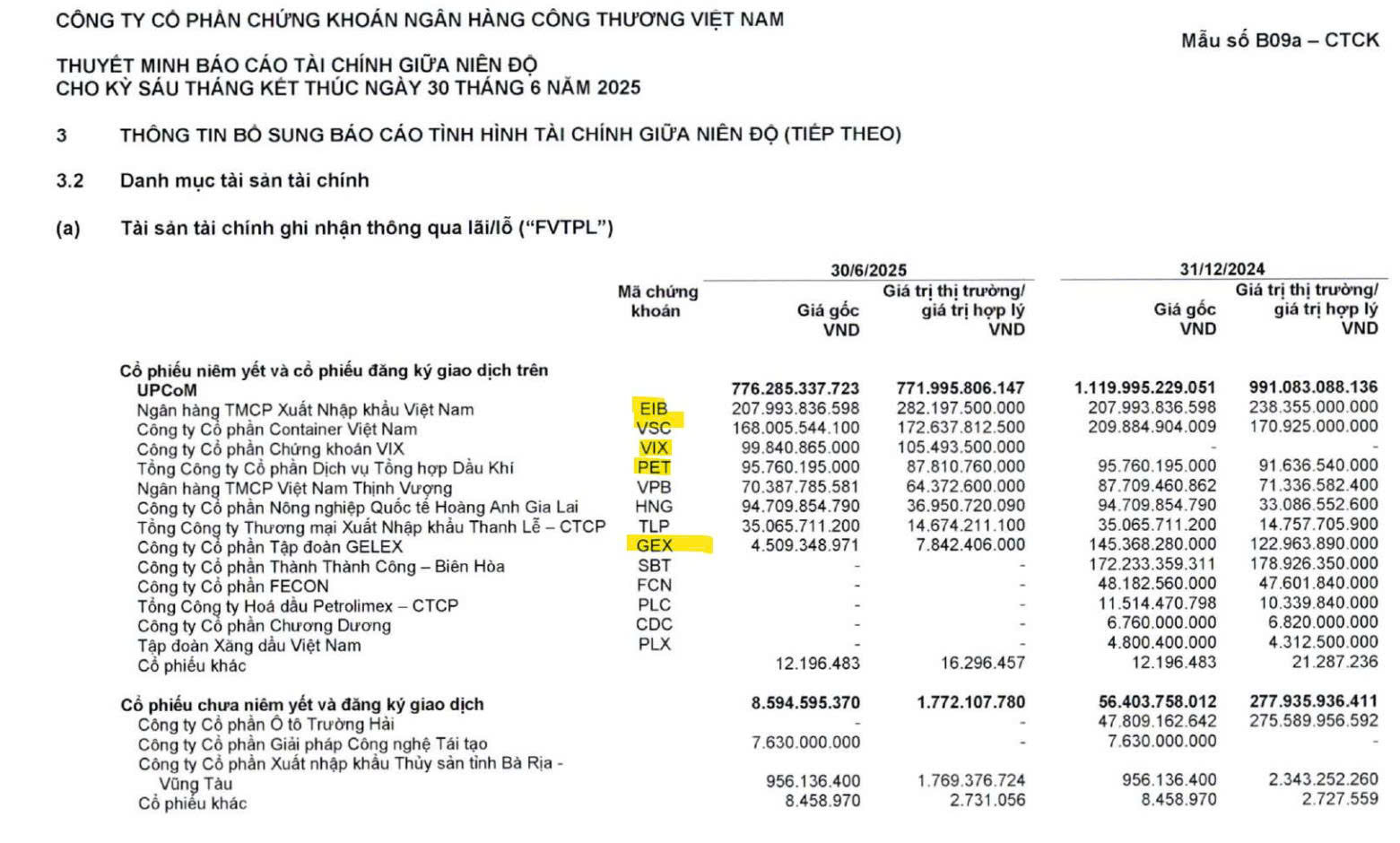 Bên dưới là danh mục tự doanh của CTS với nhiều cổ phiếu trong giai đoạn vừa qua có mức tăng ấn tượng như VSC, VIX, GEX… Hay gần đây nhất là thương vụ mua phát hành riêng lẻ 2 triệu cổ phiếu TAL với mức giá 31, hiện tại TAL đang giao dịch ở mức giá 41 cho thấy đây là thương vụ đã có lợi nhuận. Với danh mục tự doanh bên dưới và kết quả nâng hạng của thị trường chứng khoán thì việc quý 3/2025 các công ty chứng khoán nói chung và CTS nói riêng sẽ có kết quả tăng trưởng.