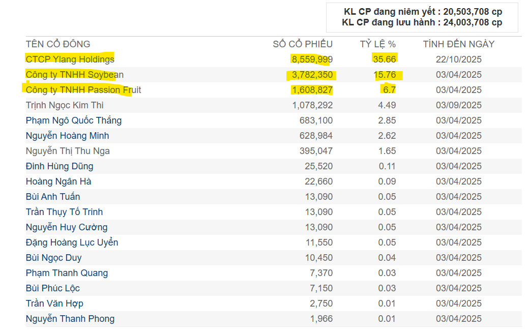 HIện tại cơ cấu cổ đông của ANT thì Ylang Holdings do doanh nhân Phạm Ngô Quốc Thắng sáng lập chính thức trở thành cổ đông lớn tại Antesco thông qua các pháp nhân Soybean, Baby Corn và Passion Fruit đang nắm khoảng 58% tương ứng 13.8 triệu cổ phiếu trong tổng số 24 triệu cổ phiếu