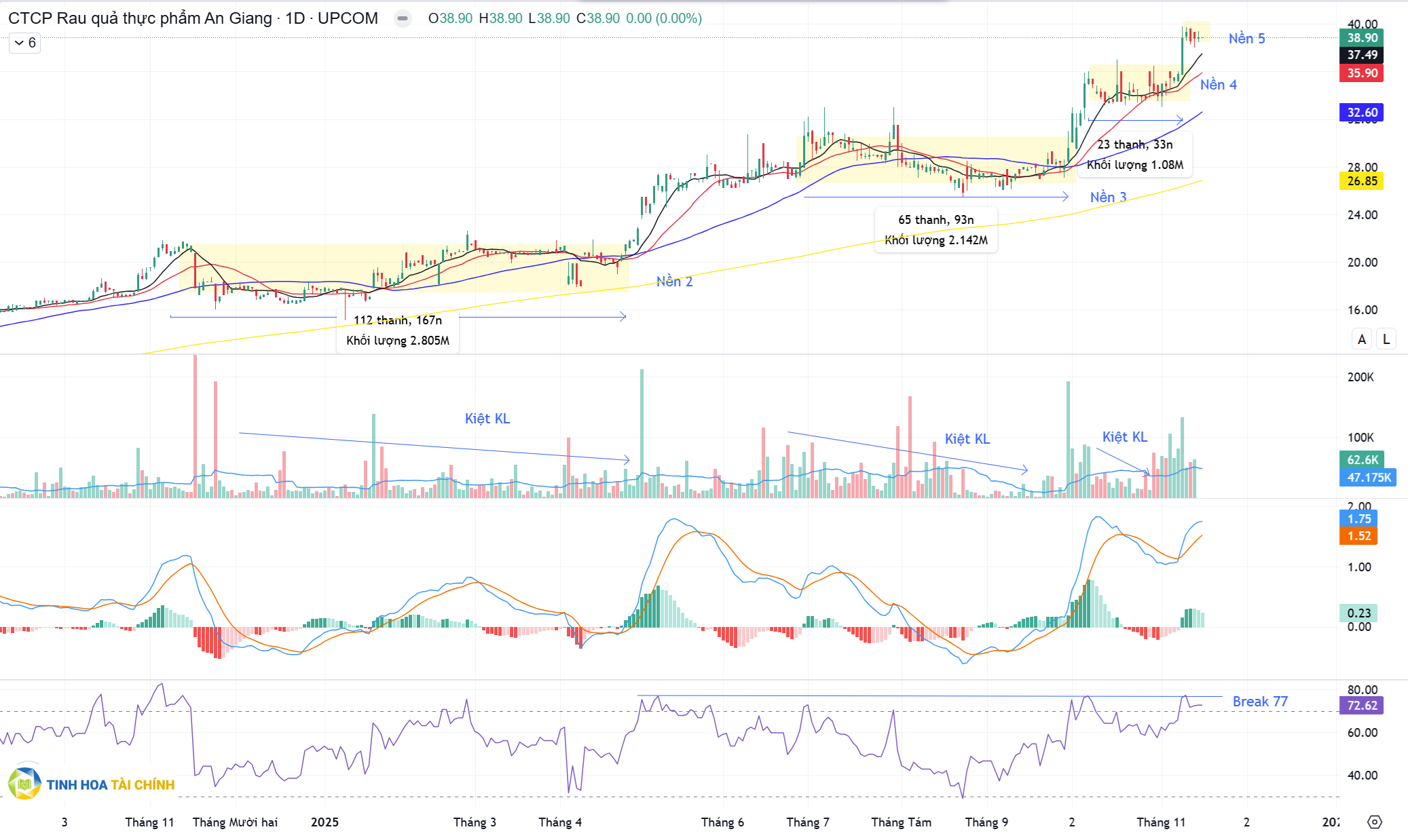 Trên đồ thị phân tích kỹ thuật của ANT cổ phiếu đang biến động ở nền giá số 5 với chùm thanh khoản tăng đột biến với nền giá tích lũy 5 phiên. Trước đó là cấu trúc nền chồng nền của cổ phiếu cho thấy lượng cung được hấp thu và quan trọng hơn là sự cam kết đồng hành của các nhà đầu tư tham gia ANT.