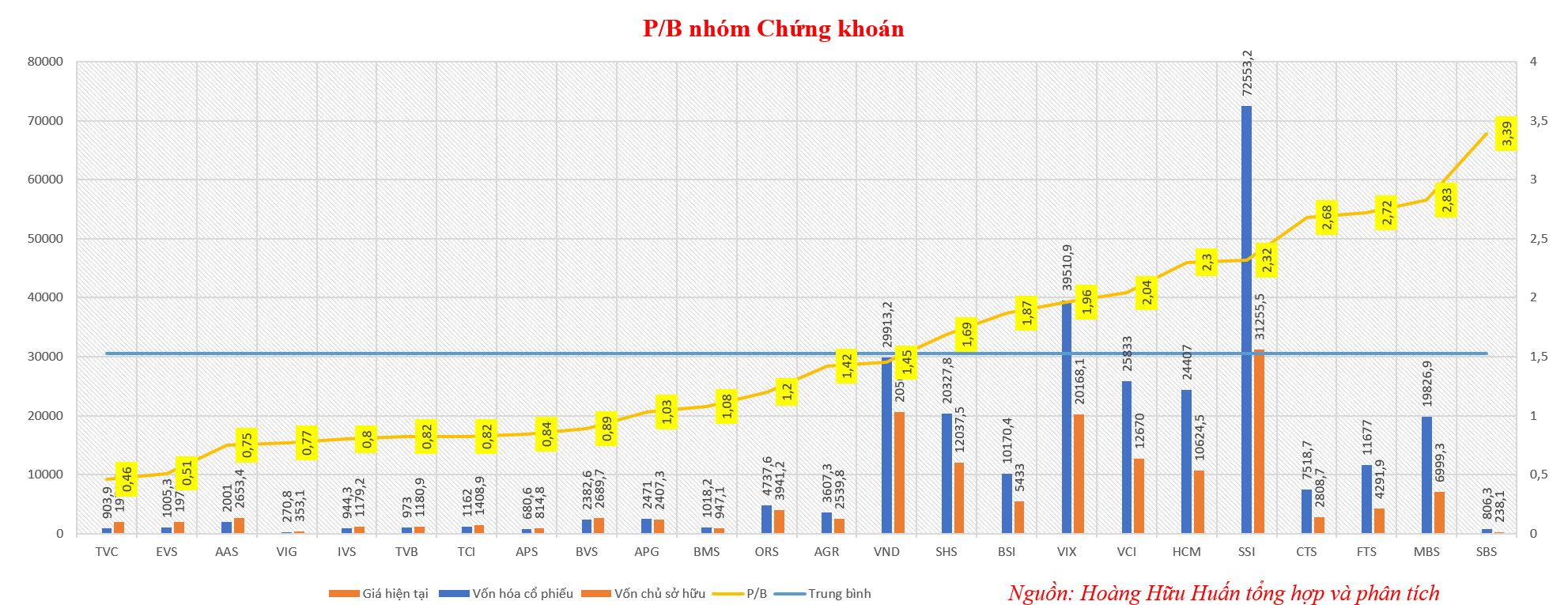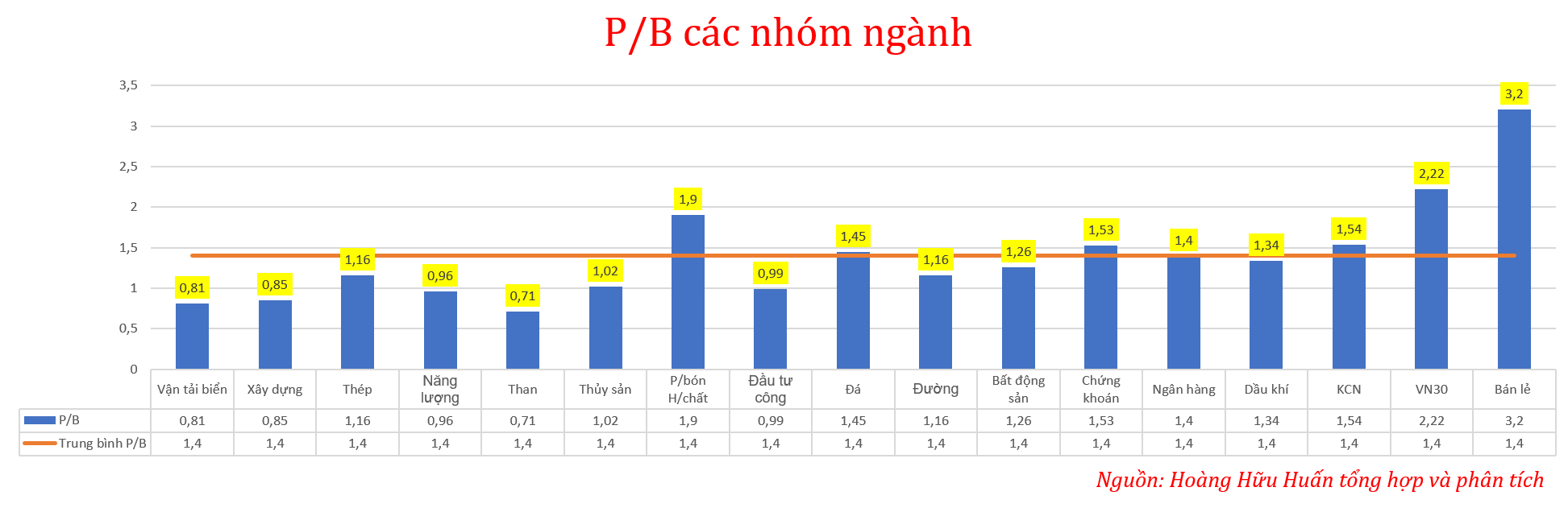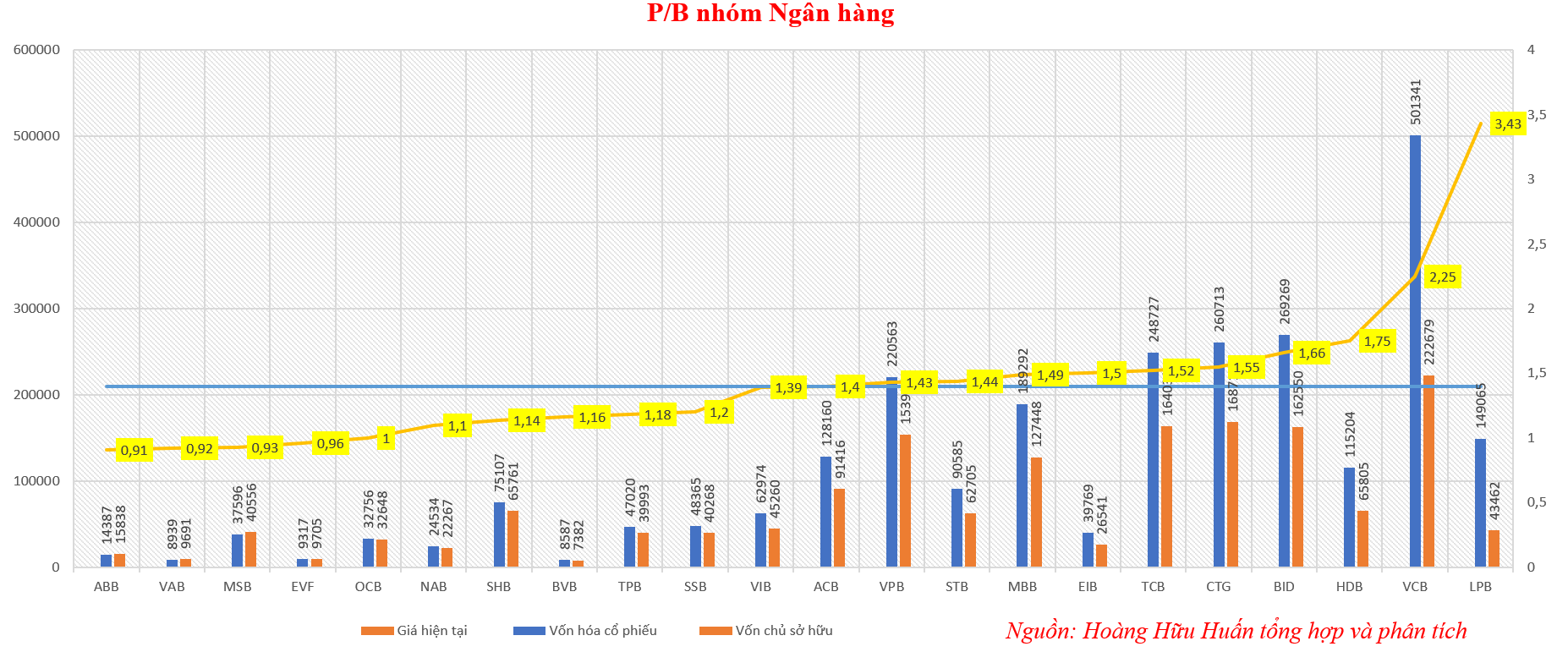 hoặc P/B = Vốn hóa công ty / Vốn chủ sở hữu