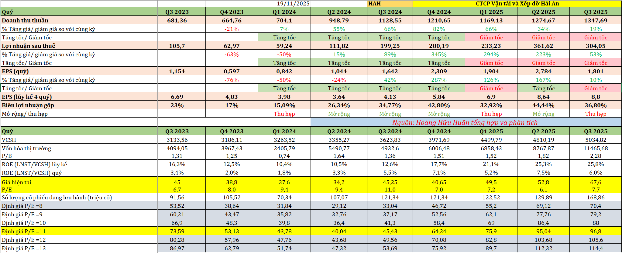 Kết quả kinh doanh quý 3/2025 của HAH :