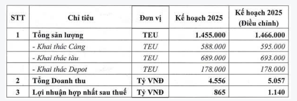Ban lãnh đạo HAH muốn nâng chỉ tiêu tổng doanh mới là 5.057 tỷ đồng, tăng 11% so với kế hoạch đầu năm. Kế hoạch lợi nhuận sau thuế mới dự kiến 1.140 tỷ đồng, tăng 32% so với mục tiêu ban đầu. HAH cũng điều chỉnh chỉ tiêu tổng sản lượng lên 1,466 triệu TEU, tăng 0,8% so với kế hoạch đầu năm. Con số này bao gồm tăng sản lượng khai thác cảng và khai thác tàu lên lần lượt 595.000 và 693.000 TEU, trong khi giữ nguyên sản lượng khai thác depot 178.000 TEU. Chi tiết bảng bên dưới: