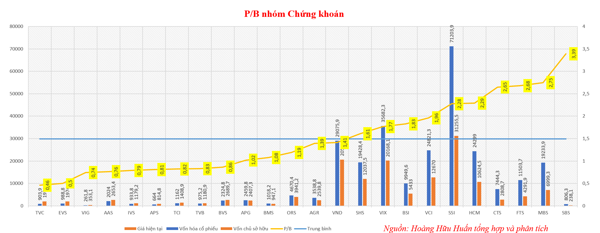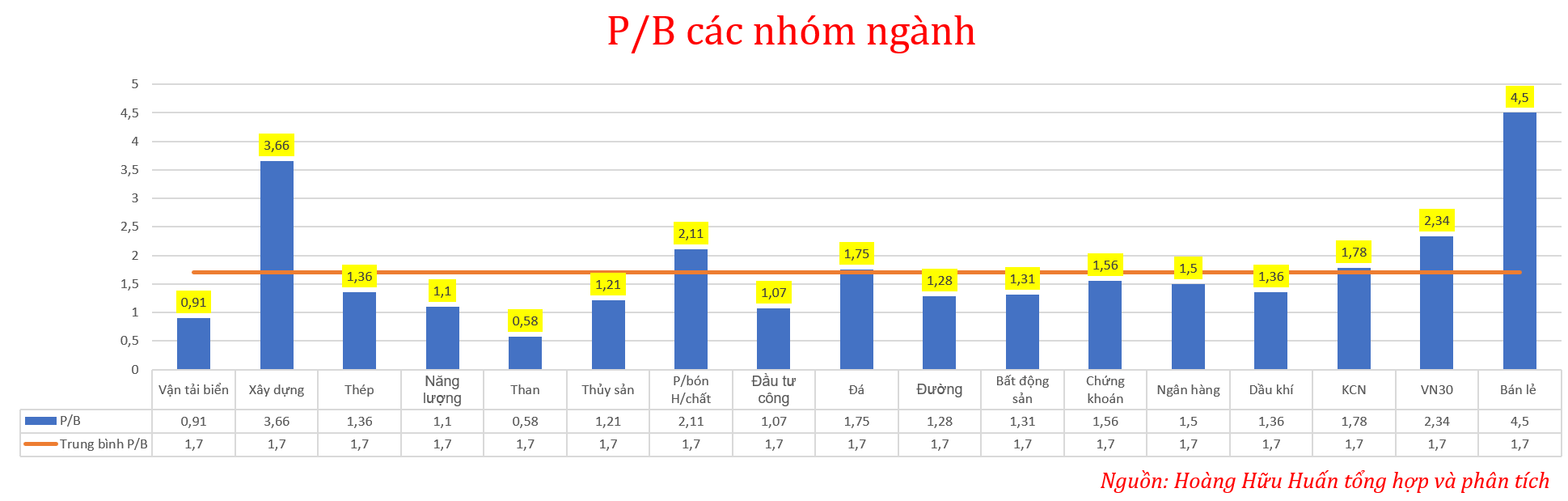 Cập nhật P/B các nhóm ngành 24/11/2025: Trung bình ngành, ngân hàng, chứng khoán, bất động sản.