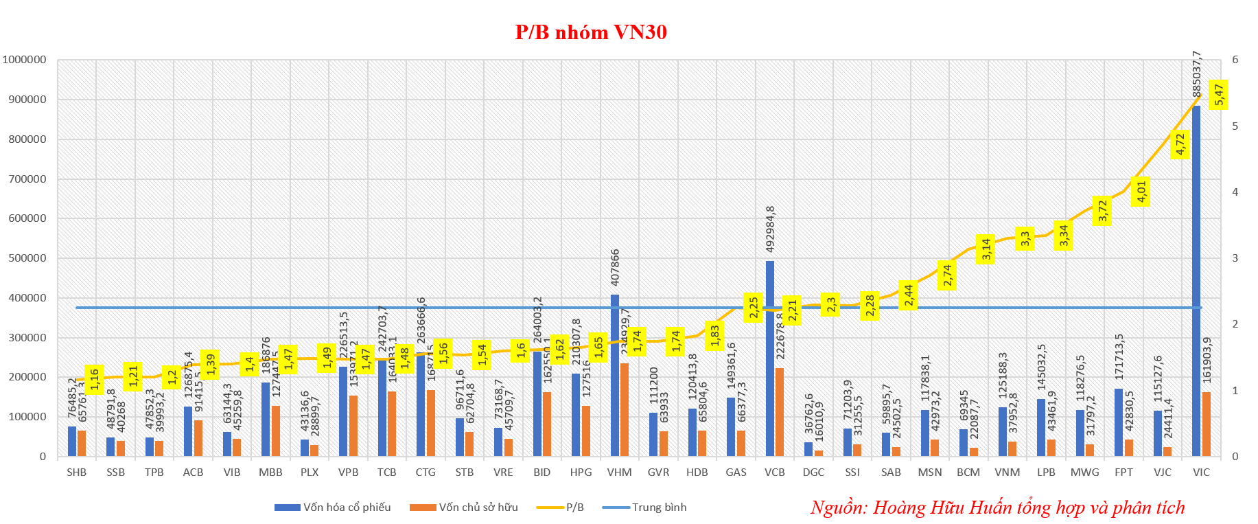 hoặc P/B = Vốn hóa công ty / Vốn chủ sở hữu