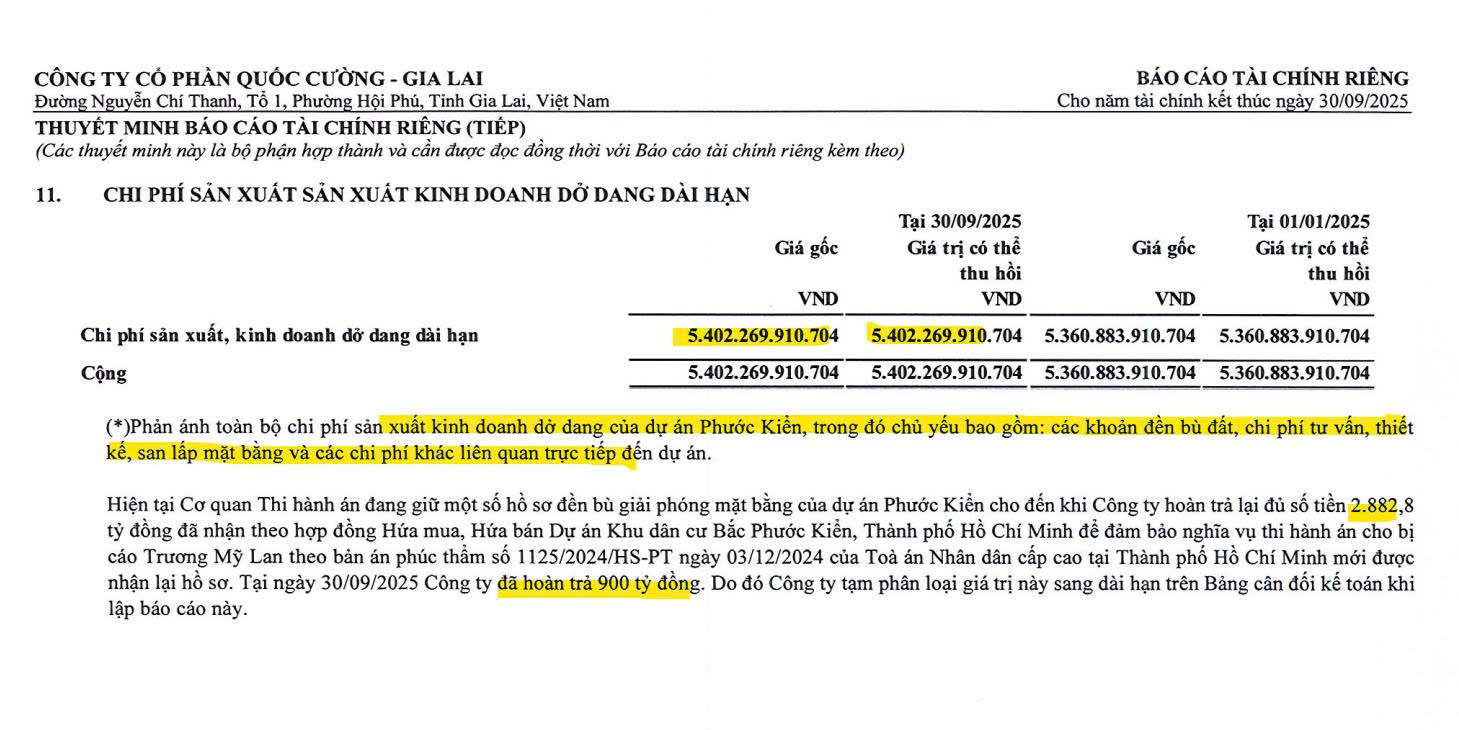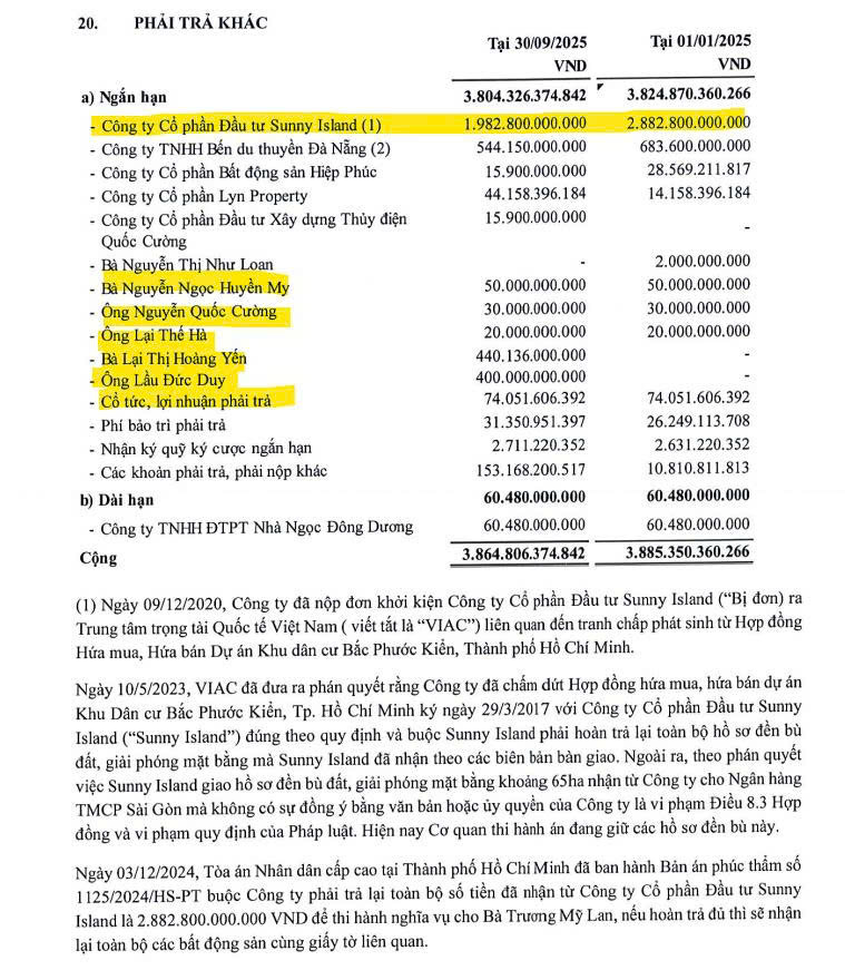 Quay lại với 92ha Phước Kiển đề cập thì QCG đã huy động vốn từ các các nhận và việc chuyển nhượng máy móc để trả hơn 1982 tỷ cho Sunny Island. Điều này thể hiện khá rõ ở mức phải trả khác tại thời điểm 30/9/2025.