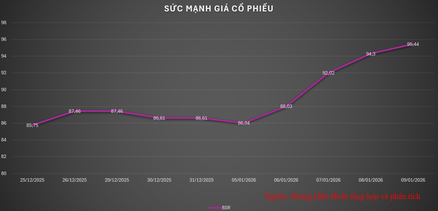 Trên đồ thị phân tích kỹ thuật cổ phiếu BSR thì phiên giao dịch ngày 09/01/2026 đánh dấu 1 phiên khá quan trọng khi cổ phiếu bứt vùng đỉnh 52 tuần vùng 19.4, đây cũng là vùng đỉnh thời đại  của BSR trong quá khứ.