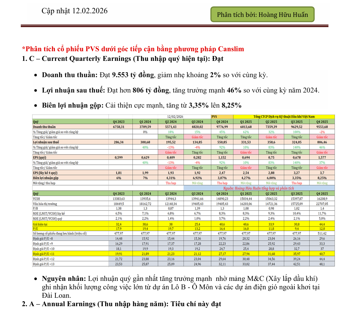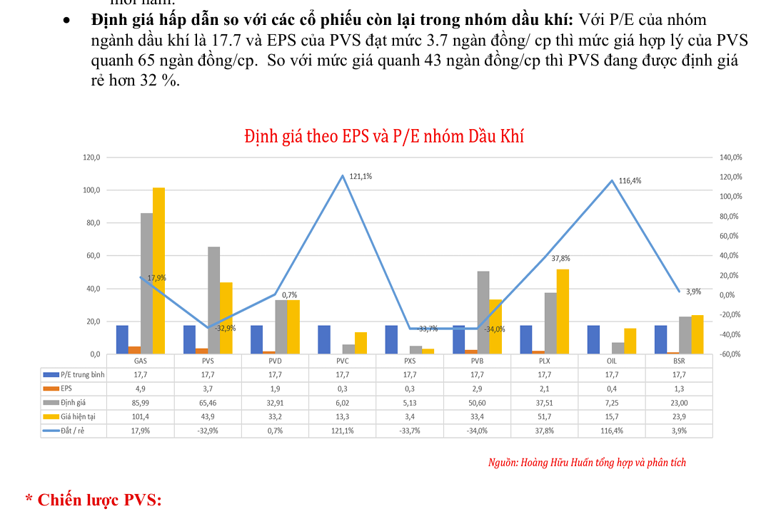 Trong nhóm ngành dầu khí thì hiện tại có PVS, PXS, PVB có định giá rẻ hơn trên 30% so với dữ liệu kết thúc phiên ngày 12/02/2026, tuy nhiên PXS, PVB về thanh khoản và quy mô doanh nghiệp không đáp ứng được tiêu chí. Nên cổ phiếu PVS là 1 trong những cổ phiếu đang có dư địa tăng tiếp trong năm 2026, đồng thời với sóng ngành dầu khí đang mạnh thì việc cổ phiếu có yếu tố cơ bản thì việc tăng tiếp sẽ có cơ sở.