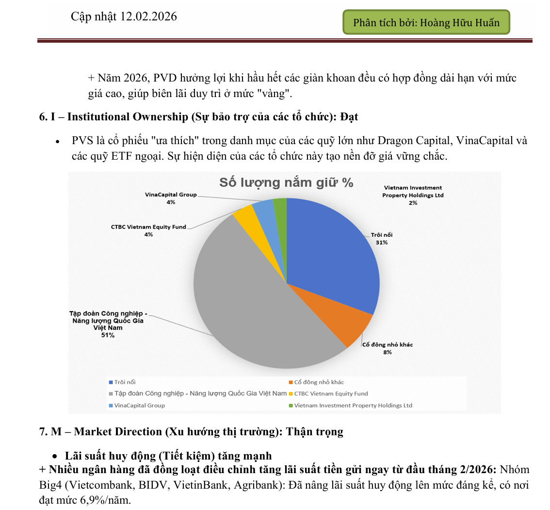 Chiến lược với PVS là tiếp tục nắm giữ cho trung và dài hạn, yếu tố có tác động tới PVS hiện tại là thị trường chung còn nội tại doanh nghiệp thì đã phân tích và có dư địa tiếp tục giữ mức doanh thu, lợi nhuận trong năm 2026.